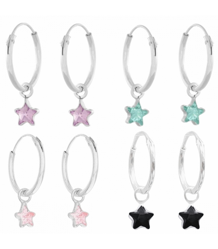 Aro Plata con Estrella Circonita 12mm. Precio par