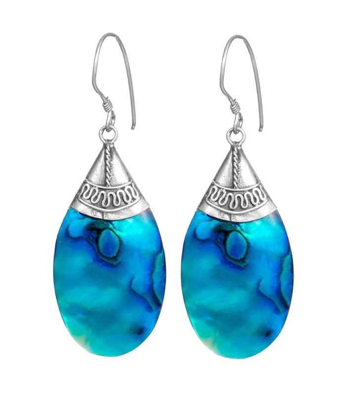 Pendiente Plata Abalon Azul Filigrana 30mm. Precio Par