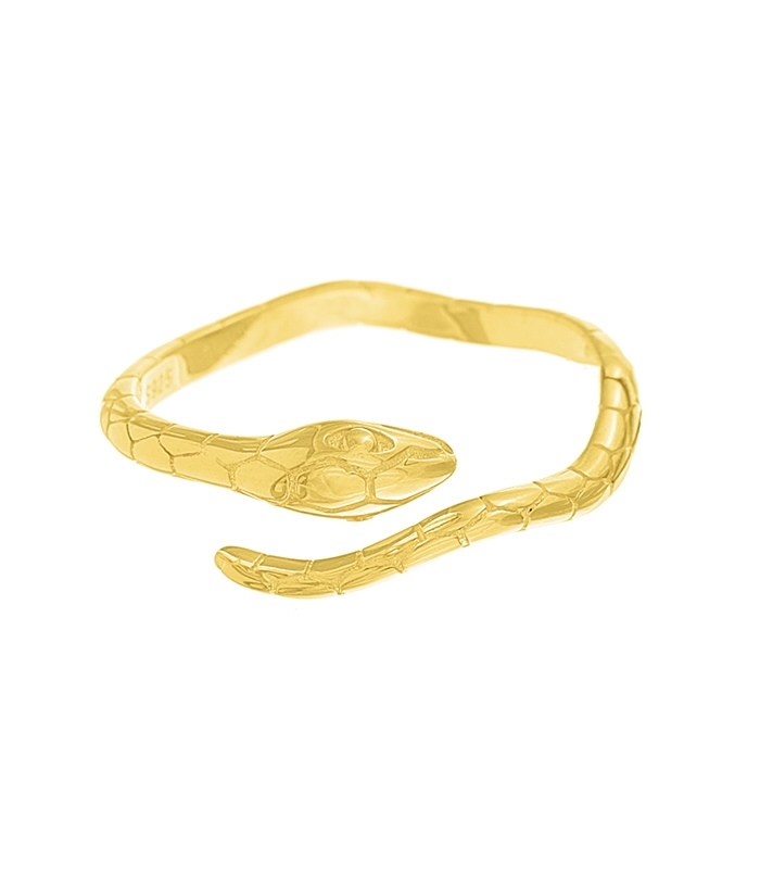 Anillo de plata de ley con forma de serpiente Bañado en oro de 18k. Ajustable. Venta mayorista de Plata 925 en Madrid y online