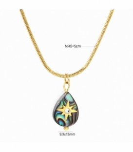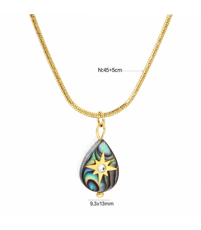 Descripción: Gargantilla Acero 316L Rosa de los Vientos Abalon Bañada en Oro 18K PVD ultra resistente