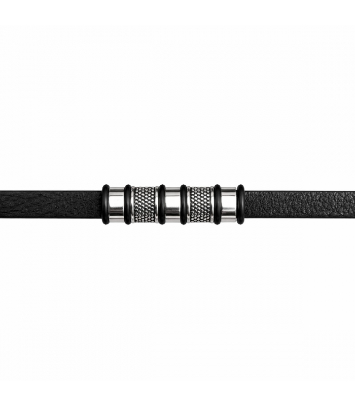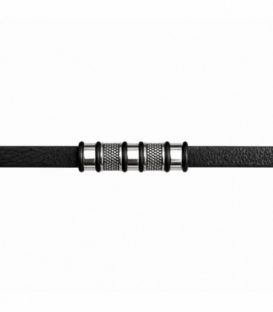Pulsera Cuero Acero Negro 316L 21cm