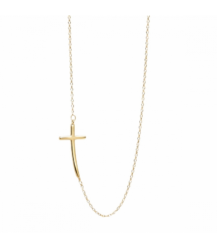 Descripción: Gargantilla Latón Cruz Bañado en Oro 14K