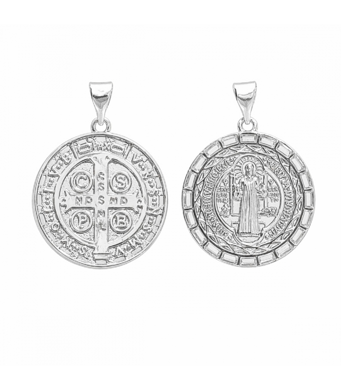 Descripción: Colgante Latón San Benito Bañado en Rodio