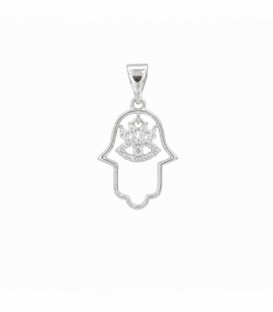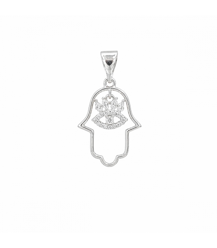 Descripción: Colgante Latón Mano de Fatima con Circonitas Bañado en Rodio