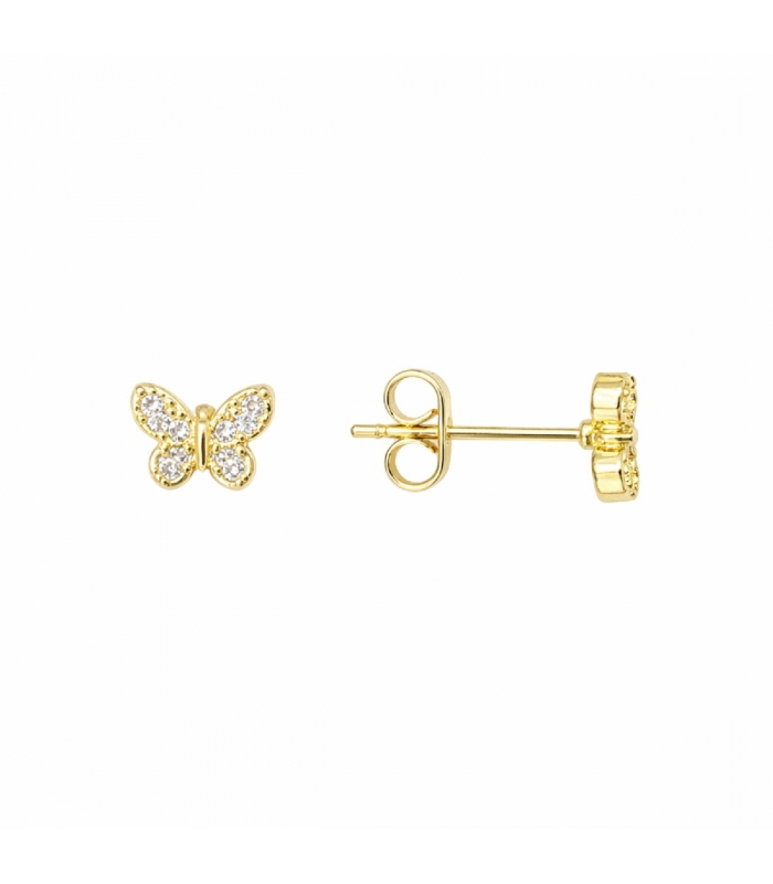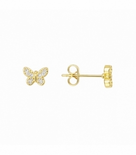 Descripción: Pendiente Laton Mariposa con Circonitas Bañado en Oro 14K