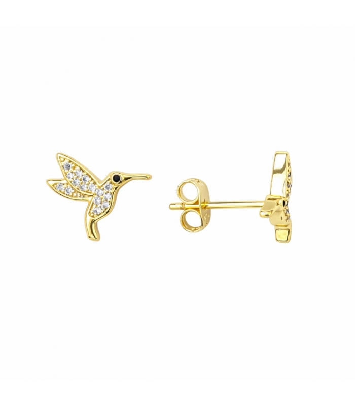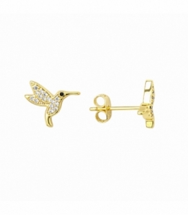 Descripción: Pendiente Laton Colibri con Circonitas Bañado en Oro 14K