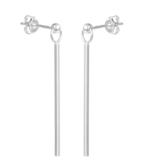 Pendiente Plata Barra Cuadrada 33mm Bañado Precio Par