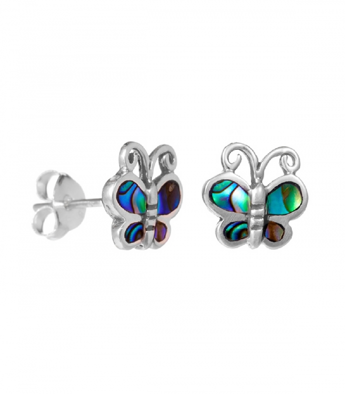 Penidente Plata Mariposa Abalon 9mm. Precio Par