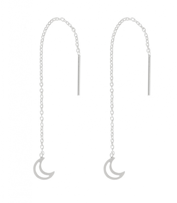 Pendiente Cadena Plata Luna 8cm Precio Par