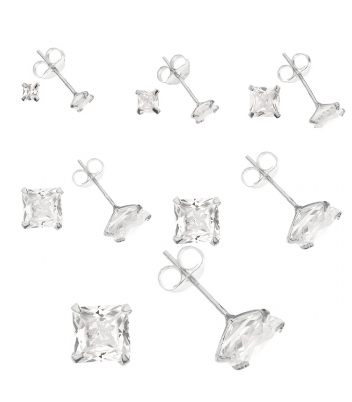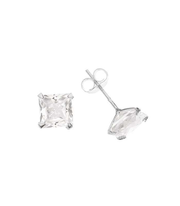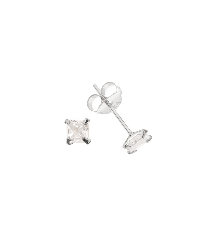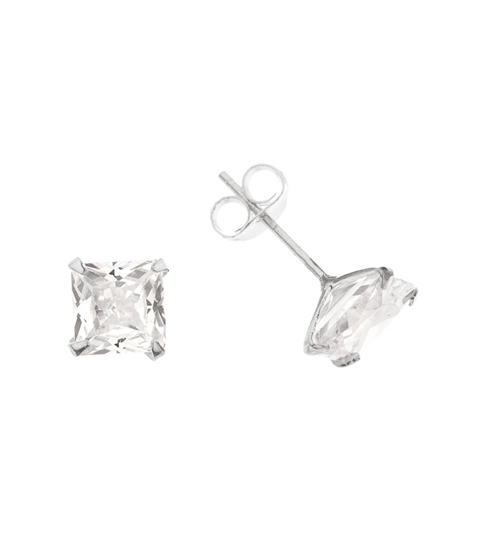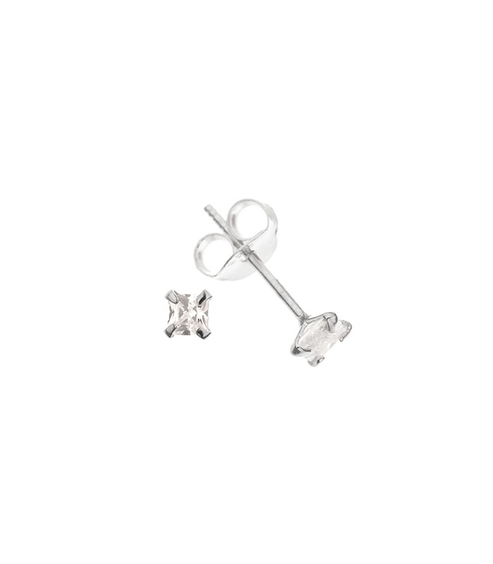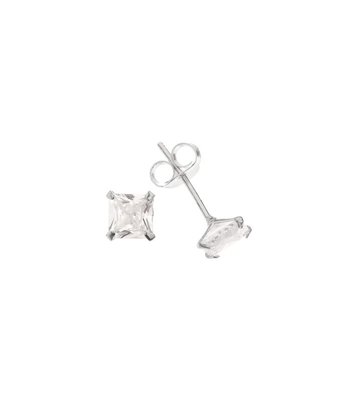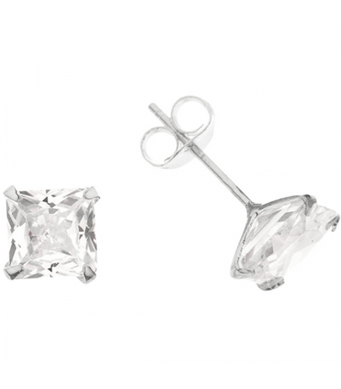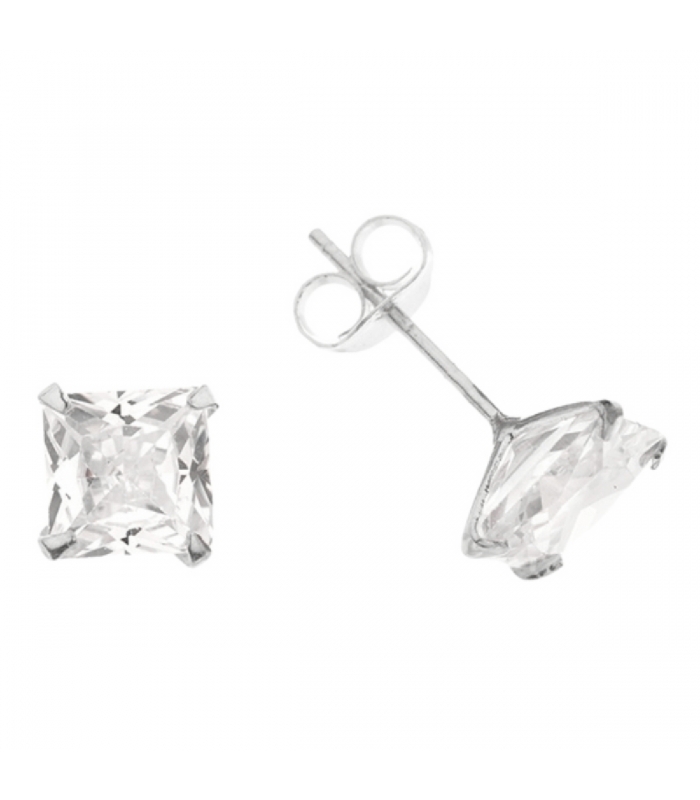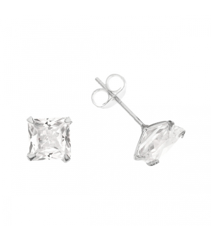Pendiente Plata Brillante Cuadrado Engarzado. Precio par