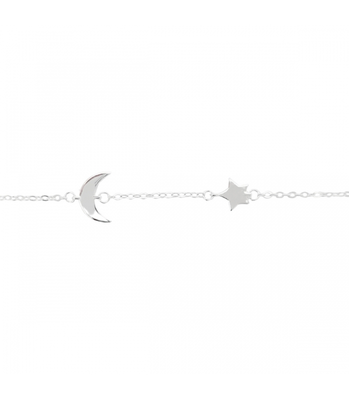 Pulsera Plata Luna y Estrella 15,5+3cm