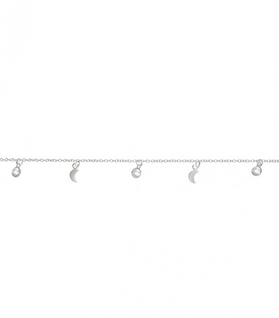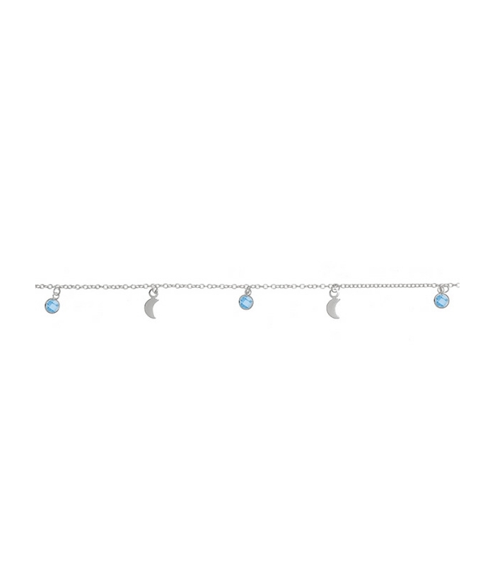 Pulsera Plata Lunas Circonitas Azul 17+3cm