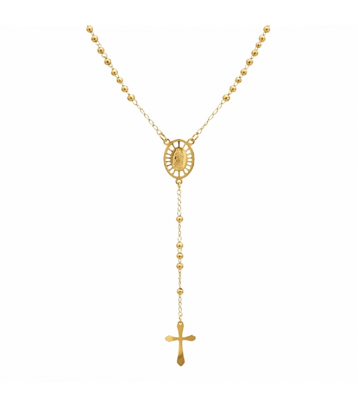 Description: Collier en Acier Rosarie Vierge de Guadalupe Plaqué Or