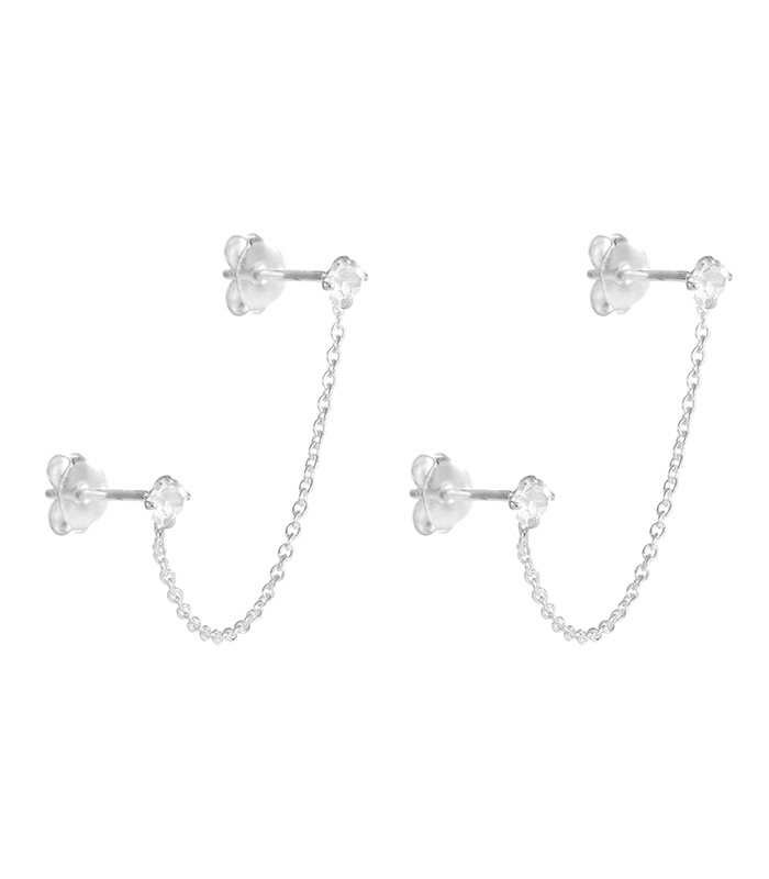 Description: Boucles d'Oreilles Chaîne Deux Trous Zirconium Blanc