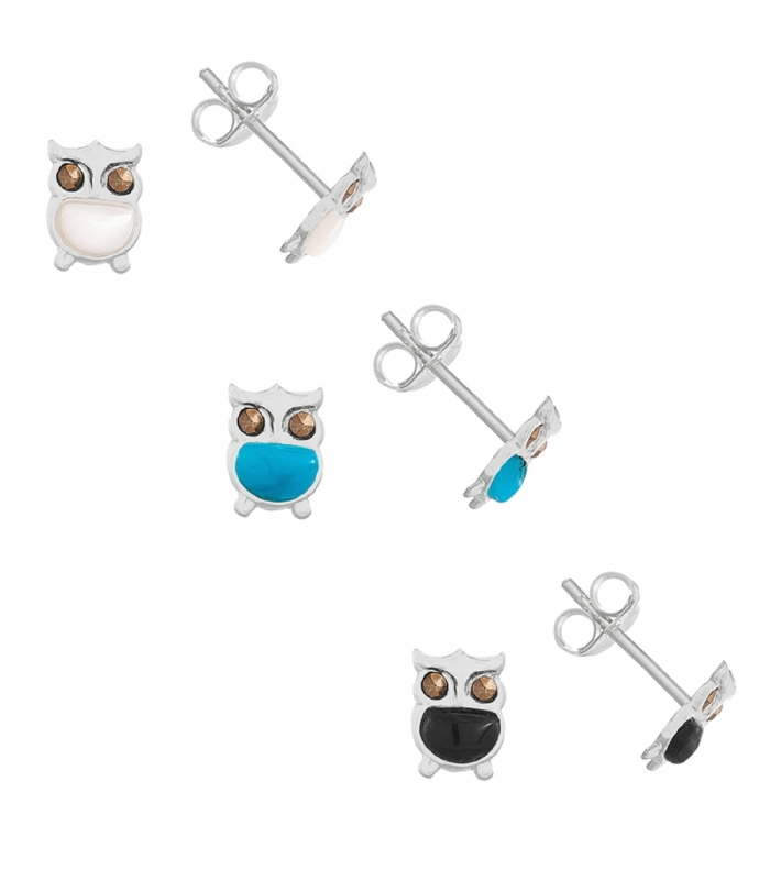 Boucles d'oreilles Argent Hibou Pierre Prix Paire