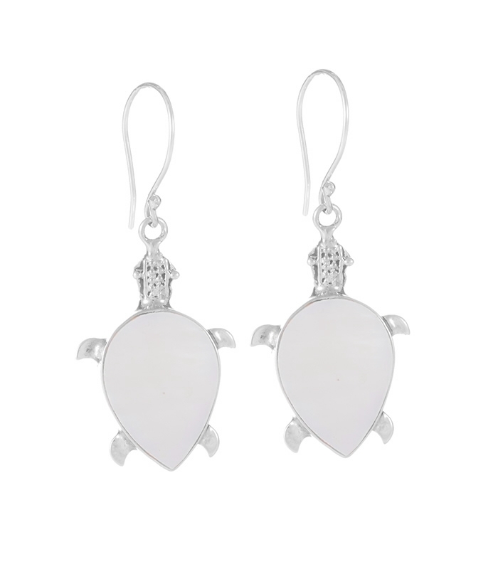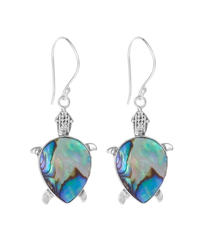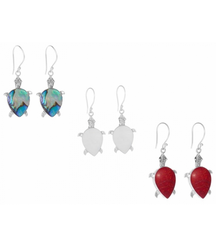 Boucle d'oreille Argent Tortue Pierre 22mm Prix Paire