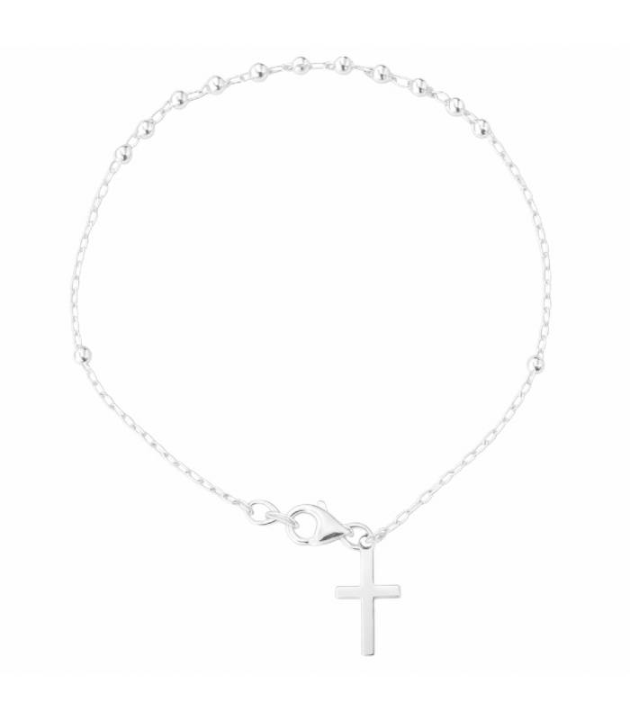 Cette joya représente un chemin de foi et de beauté qui relie la terre au ciel. Chaque maillon de sa fine chaîne est un souffle de lumière, semblable à une goutte de rosée à l’aube, rappelant la pureté de l’éternel. La croix, suspendue avec délicatesse, est un symbole de guide et d’espérance, un phare silencieux qui éclaire l’âme. L’argent clair et lumineux reflète la pureté des rivières cristallines, tandis que les perles brillent de l’authenticité de petites graines de vie, semblables à des étoiles semées sur l’horizon. Ce bracelet chapelet n’est pas seulement un ornement, mais un poème porté sur la peau : un pont entre l’histoire, la spiritualité et la beauté intemporelle de la joaillerie façonnée avec vérité.