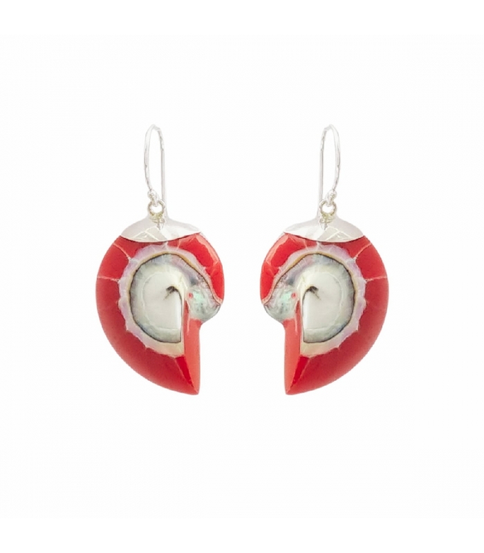 Boucle d'oreille Argent Nautilus Rouge 27mm Prix Paire