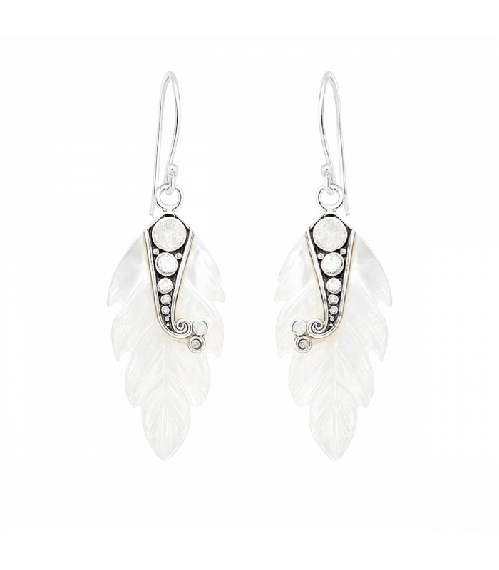 Boucle d'oreille Argent Feuille Nacre Filigrane 25mm Prix Paire