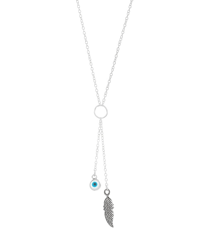 Collier Argent Mauvais Oeil Plume 35+5,5cm