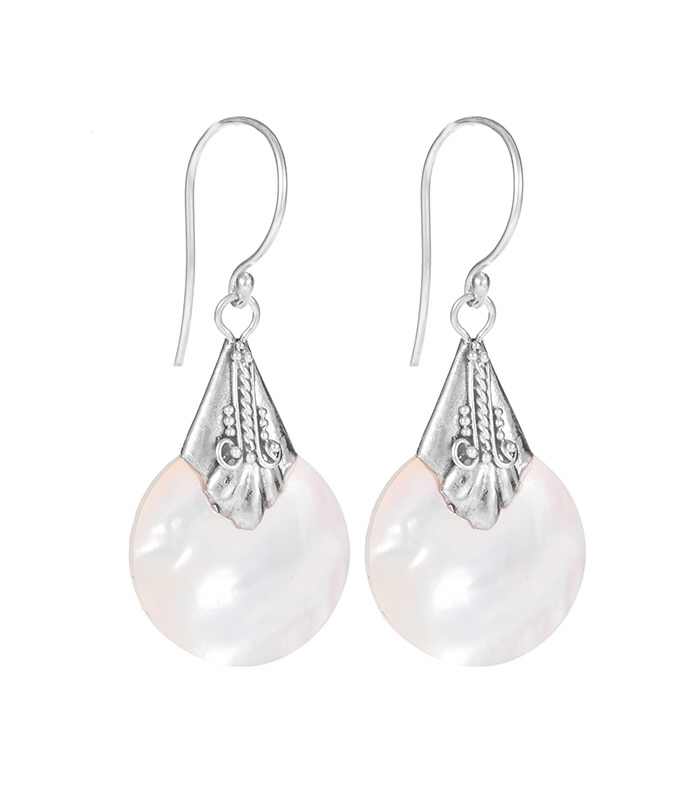 Boucle d'oreille Argent Cercle Nacre. Prix Paire
