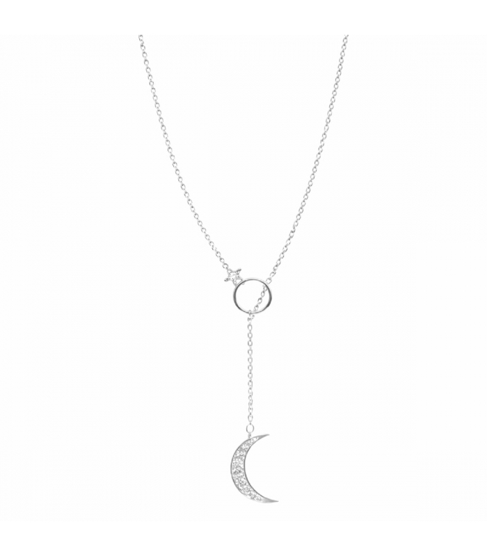 Description: Collier Ras-Du-Cou Étoile et Lune en Laiton Plaqué Rhodium