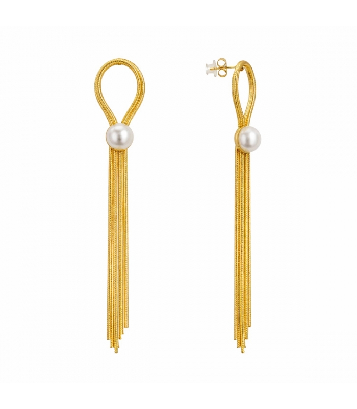 Description: Boucles d’oreilles en Acier 316L Perle Plaqué Or
