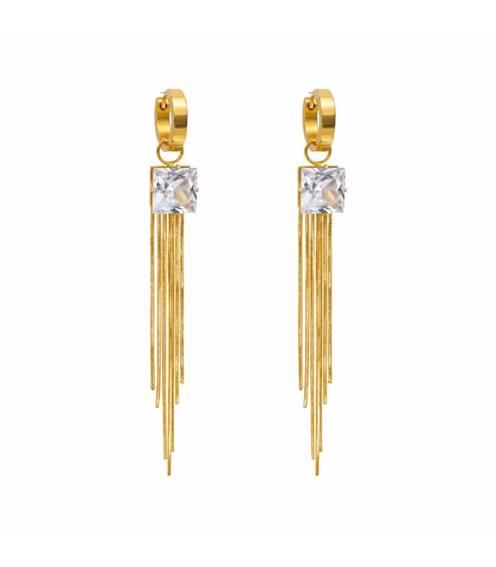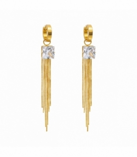 Description: Boucles d’oreilles en Acier 316L Chaînes avec Zirconia Plaqué